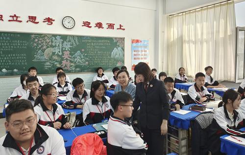 近日,辽宁省鞍山市千山区检察院检察长戴红来到鞍山市第十三中学,以法治副校长的身份同全国人大代表、该校正高级语文教师官启军一起对学生开展“杜绝校园欺凌,检察蓝守护少年的你”法治教育。