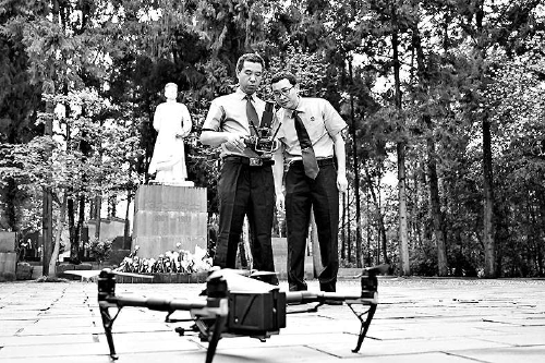 近日,贵州省锦屏县检察院干警前往该县烈士陵园,利用无人机对烈士陵园消防设施、墓地周围森林防火情况进行公益诉讼线索排查。 本报通讯员丁倩摄