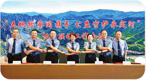 2023年8月,北京市检察院第四分院与天津市检察院第一分院、河北省张家口市检察院、河北省廊坊市检察院、山西省大同市检察院、山西省朔州市检察院、内蒙古自治区乌兰察布市检察院,共同签署永定河流域检察机关关于建立生态环境和资源保护公益诉讼协作备忘录,建立永定河流域生态环境和资源保护检察公益诉讼协作机制。