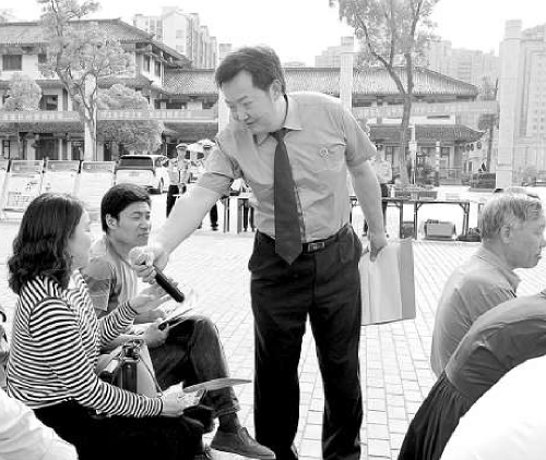 检察干警与现场群众交流互动。