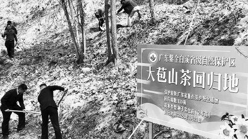 本报讯(记者韦磊 通讯员邓莹莹)近日,广东省紫金县检察院携手广东紫金白溪省级自然保护区举行珍稀濒危植物回归季启动仪式暨大苞山茶野外回归行动,130株大苞山茶被栽种在保护区内的紫金县生态环境损害赔偿和修复示范点。参加活动的中山大学生命科学学院教授廖文波对记者说:“这是全国首次开展大苞山茶野外回归作业,我非常激动!”
