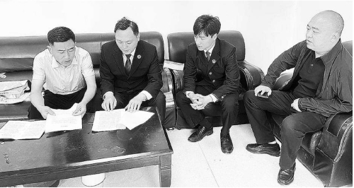 检察官与镇政府工作人员对赵某某行政补偿案件的争议化解方案进行商讨。