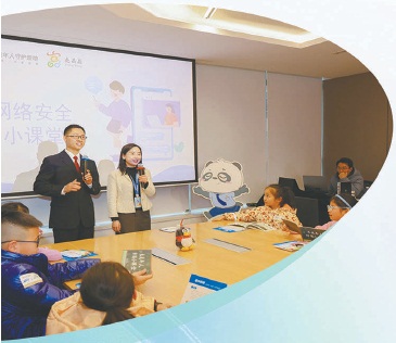 今年1月,“守护E安全 护未同行动”活动在四川成都腾讯未成年人守护营地举办。图为检察官在“网络安全小课堂”和同学们互动。