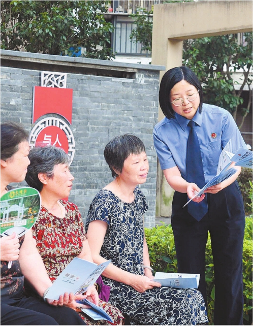 鼓楼区检察院检察官在社区开展反诈普法宣传。