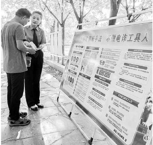 图③:河南省浚县检察院干警走进社区,向居民讲解“杀猪盘”等常见诈骗伎俩与防范策略,提醒老年人提高识骗防骗能力,切莫贪图小利、心存侥幸,避免成为电信网络诈骗的工具人或帮凶。 本报通讯员宋凯云摄