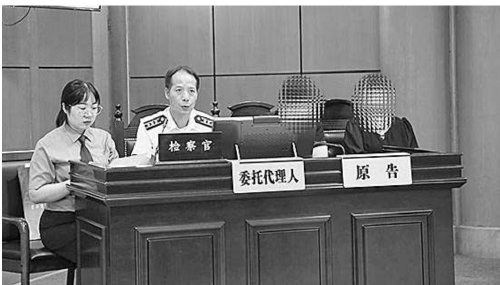 图为瑞安市检察院与杭州军事检察院检察官到庭支持起诉。