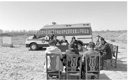 今年4月,检察官在西营子城址现场召开整改评估公开听证会。