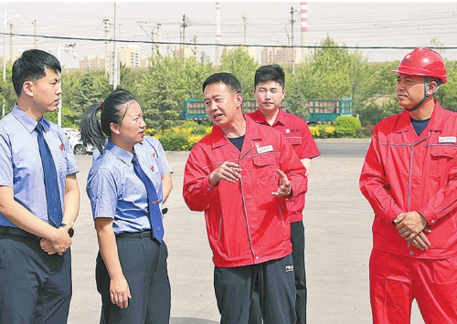 2024年5月,内蒙古自治区呼和浩特市检察院干警走进呼和浩特市世洁燃气有限责任公司开展主题党日活动,与巩学峰代表(中)交流。