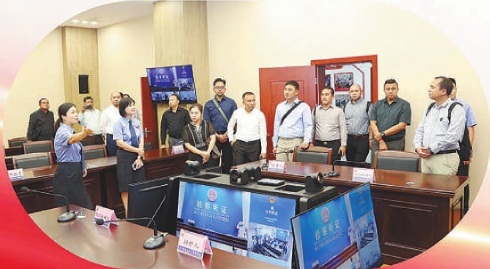 作为西部陆海新通道的出海口、“一带一路”海陆衔接的重要门户港,钦州港路畅八方,繁忙的景象似乎诉说着中国(广西)自由贸易试验区钦州港片区改革创新的故事。钦州市检察机关打击走私、保护知识产权、助力平安港口和绿色港口建设,在服务保障广西自贸试验区钦州港片区建设上找准切口、精准发力,服务高水平对外开放,保护企业扬帆出海。“印尼是‘万岛之国’,海港的建设对印尼经济发展有着举足轻重的作用,我们希望拥有这样智能化的港口,也希望能和中国检察官一样,在做好法治保障上有所作为。”研修班团长阿里亚·维卡萨纳说道。