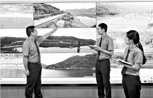 湖北省十堰市郧阳区检察院检察人员通过检察数字中心大屏,远程分析研判丹江口库区郧阳段流域周边生态环境和水质安全情况。
