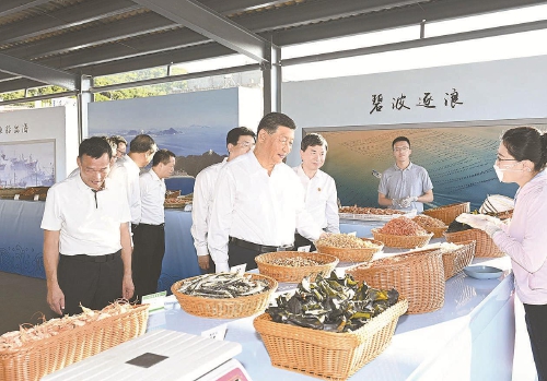 十月十五日至十六日,中共中央总书记、国家主席、中央军委主席习近平在福建考察。这是十五日下午,习近平在漳州市东山县陈城镇澳角村考察时,了解海鲜干货和渔获产品交易情况。 新华社记者谢环驰摄