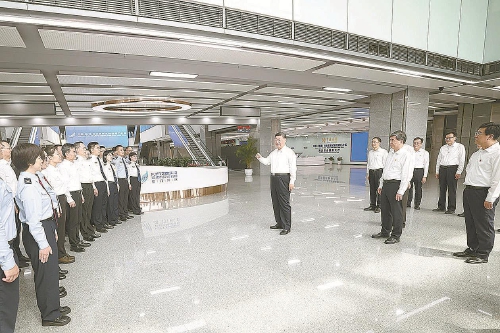 十月十五日至十六日,中共中央总书记、国家主席、中央军委主席习近平在福建考察。这是十六日上午,习近平在中国(福建)自由贸易试验区厦门片区考察时,同综合服务大厅现场工作人员亲切交流。 新华社记者鞠鹏摄