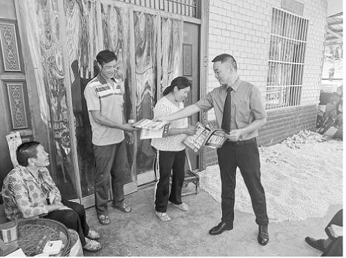 今年9月18日,陕西省镇坪县检察院干警在上竹镇松坪村开展平安建设法治宣传,向群众发放宣传材料。