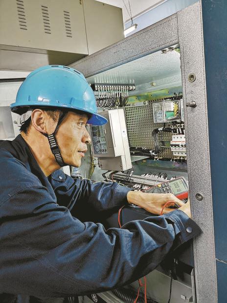 付胜利在车间排查电气故障。