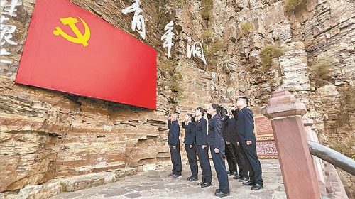 近日,河南省林州市检察院开展“赓续红色血脉、传承红旗渠精神”廉政教育活动,党员干警在红旗渠青年洞前重温入党誓词,进一步坚定爱党信念。