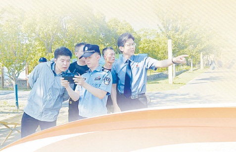 志愿者茅哲诚(左一)与上海市崇明区检察院检察官在对一起公益诉讼案件跟进监督。