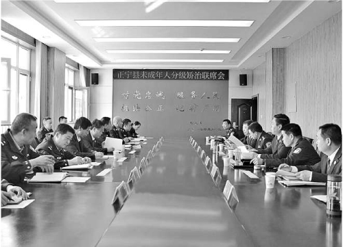 今年10月,甘肃省正宁县检察院、县公安局、县法院、县司法局共同召开未成年人分级矫治联席会,讨论《正宁县罪错未成年人分级矫治实施办法(试行)》。
