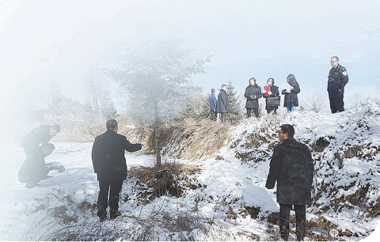 图④:2021年11月30日,甘肃省检察院办案检察官对犯罪现场进行复核勘验。