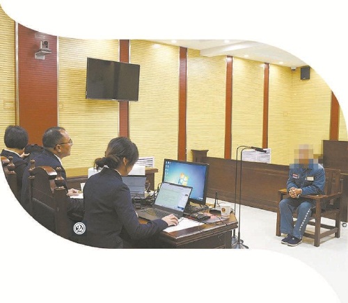 图②:2023年11月21日,最高检办案检察官和甘肃省检察院办案检察官一起提审马某林。
