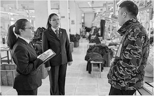 宁波市海曙区检察院检察官走访涉案企业,了解行政处罚后的整改情况。