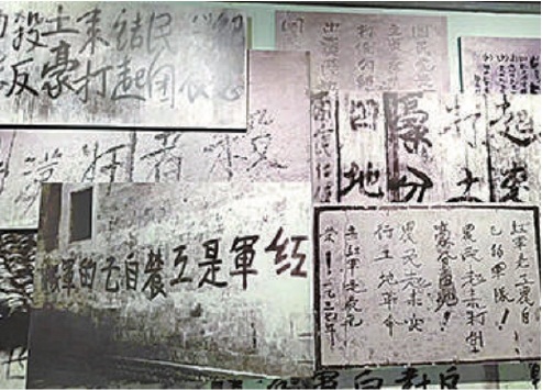 浙西南红色标语墙放在当时整个国内革命的大环境里看,也是颇有特色的。其数量之多、内容之丰富、分布之广泛、保存之完好,甚是难得。这些标语书写在农家墙壁上、木板壁上、天井墙壁上和宗祠墙壁上,墙是土墙砖墙石墙,书写的工具则是就地取材、因地制宜,毛笔、墨水甚至笋壳棕片沾上锅底灰等。这些标语没有华丽的词藻,没有深奥的道理,但是通俗易懂、直抵人心,朴素的文字,就像漫漫黑夜里一盏灯火、一把火炬,点燃了劳苦大众的希望;又如一道闪电,照亮了那曾经阴沉沉的黑暗天空,给当年无数百姓带来光明和希望。“一个笔杆子,一个枪杆子,革命就靠这两杆子。笔杆子有时比枪杆子还重要。”