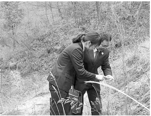 陕西省略阳县检察院检察官对尾矿库治理情况进行“回头看”。