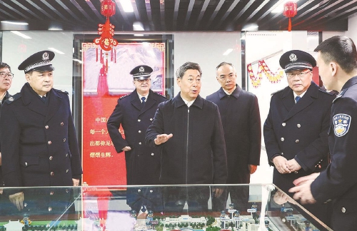 1月25日,中共中央政治局委员、中央政法委书记陈文清出席春节安保工作会并看望慰问基层政法干警。 李光印摄