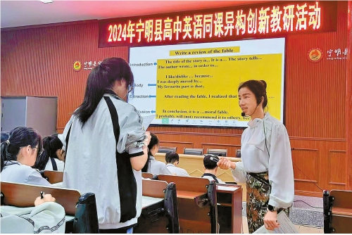 2024年5月,黄花春(右)在宁明县某中学上示范课。