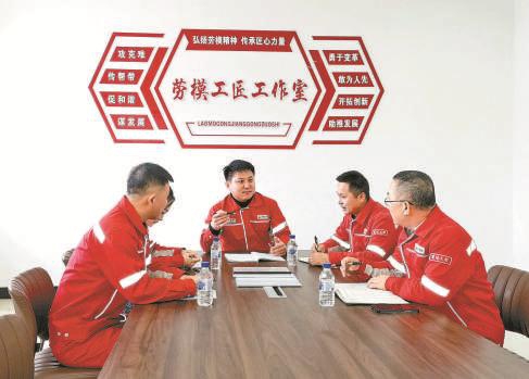 在“白景阳劳模和工匠人才创新工作室”,工友们与白景阳代表(中)畅谈着新一年的打算。 刘仍芳摄