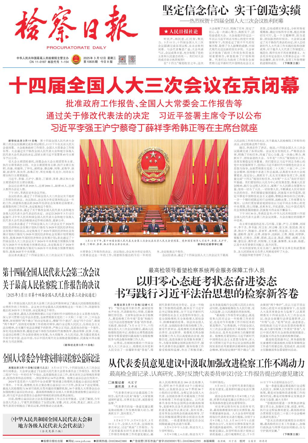 十四届全国人大三次会议在京闭幕