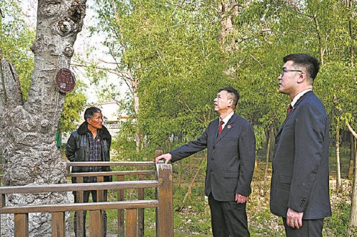 近日,河南省兰考县检察院聚力文物和文化遗产保护,到省级重点文物保护单位仪封镇谢家双楼走访调研,了解文物保护情况,查看百年古树的生长养护情况,并对进一步做好文物保护工作提出建议。 本报通讯员赵西雷摄