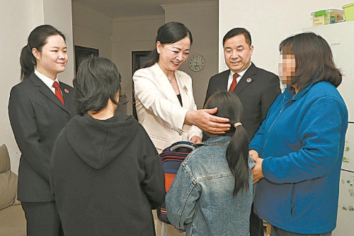 4月8日,全国人大代表、江西省九江市公共交通集团第四运营公司公交驾驶员张海荣(左三)和浔阳区检察院检察官来到某小区,对一起交通事故的受害人进行回访。2023年12月,林女士和女儿被毒驾司机郭某撞倒,导致林女士重伤二级,女儿身上多处挫伤,住院治疗耗尽全家积蓄。浔阳区检察院协同该区教体局等多个职能部门,通过开展心理辅导、发放司法救助金等方式,对林女士一家展开了一系列暖心的救助行动。
