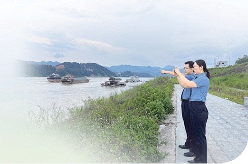 2024年5月,广东省德庆县检察院干警在西江流域德庆段实地调查取证。