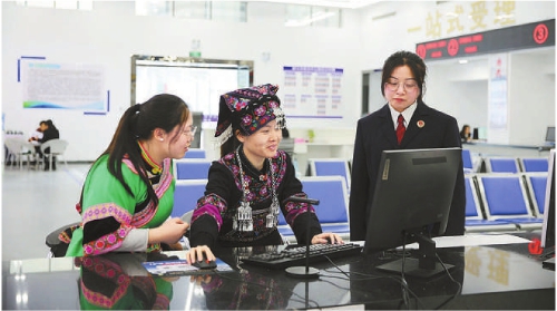近日,贵州省都匀市检察院在该市综治中心部署了“都匀检察智能AI交互终端”,运用以DeepSeek等AI为基础的智能体技术,集成语音识别、法律咨询、程序指引等功能,实现接访服务智能化。图为检察官向群众介绍智能AI交互终端功能。
