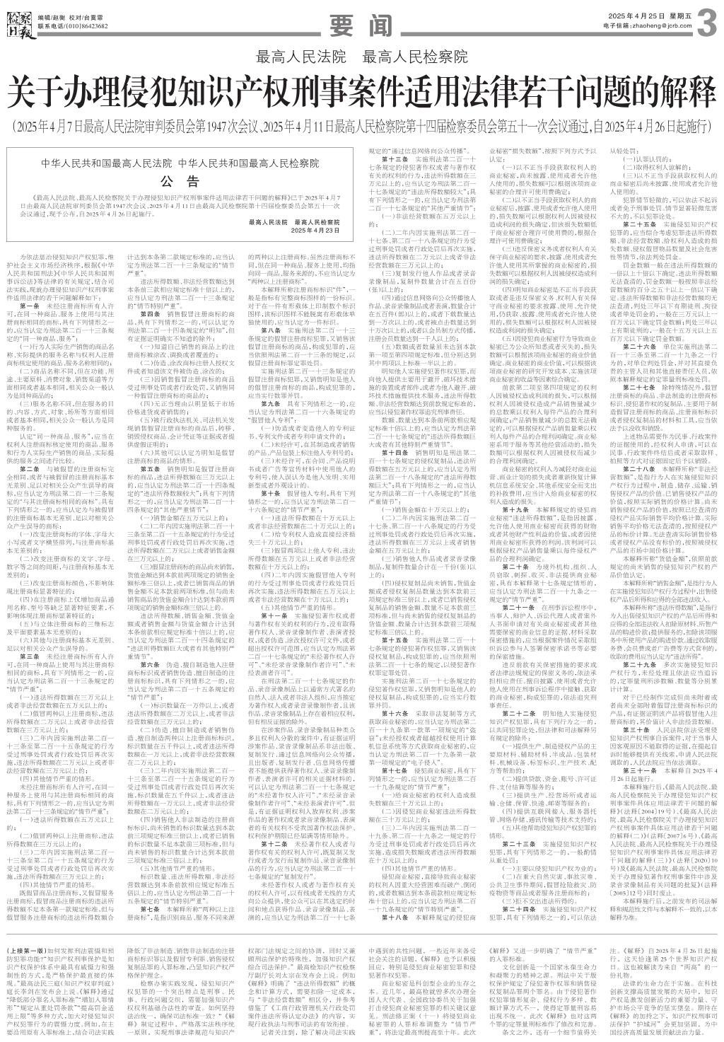 关于办理侵犯知识产权刑事案件适用法律若干问题的解释