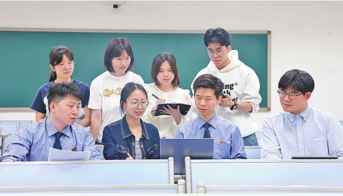 近日,重庆市江北区检察院联合酉阳土家族苗族自治县检察院走进重庆大学,举办“检察官走进(知产)课堂”活动。检察官以办理的案例为切入点,结合办案细节和法律适用,生动阐释检察机关打击知识产权犯罪、综合履职等司法实践。图为检察官与学生互动交流。