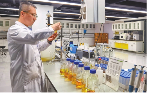 李书鹏在污染场地安全修复技术国家工程实验室里,比对不同种修复样本的效果。