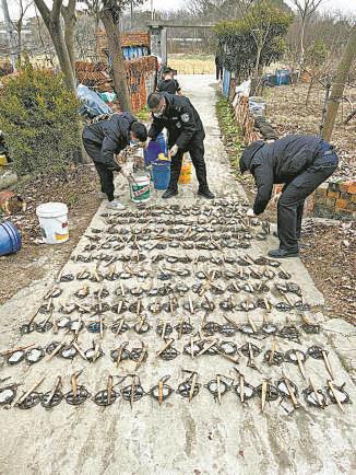 民警在于某家中查获的用于猎捕黄鼠狼的狩猎夹。