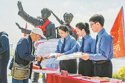 近日,辽宁省丹东市振安区检察院在“鸭绿江浮桥遗址”开展文物保护法治宣传活动。活动现场,检察干警积极向过往群众发放文物保护法宣传资料,并通过法律条文解读、图文展板等形式,向群众普及文物保护相关知识,吸引了不少市民围观。