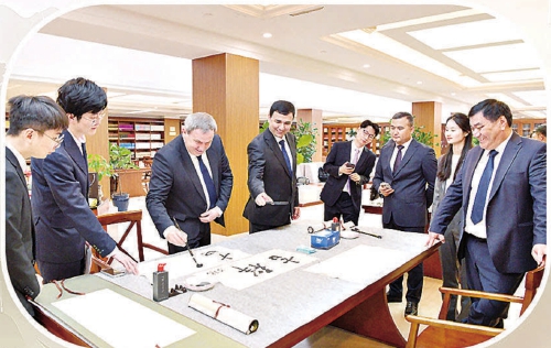 今年四月,乌兹别克斯坦检察官代表团来华研修期间,体验中国书法艺术。 江泳摄