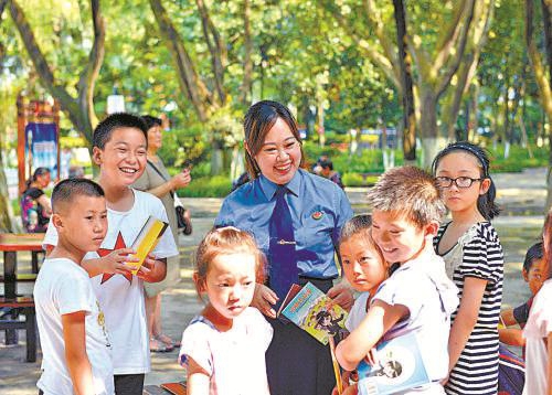 2004年,党中央、国务院出台《关于进一步加强和改进未成年人思想道德建设的若干意见》,重庆市大渡口区检察院“莎姐”青少年维权岗应运而生。图为该院检察官梅玫与孩子们进行交流。