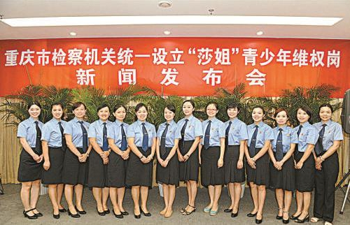 2012年8月,重庆市检察院将“莎姐”工作推广到全市三级检察院,统一设立45个“莎姐”青少年维权岗。