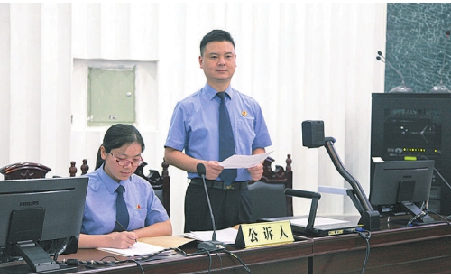 张晓波(右)出庭支持公诉。 侯宛岚摄