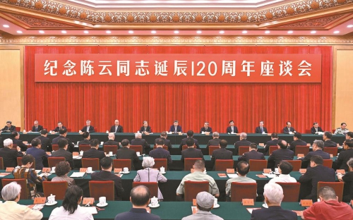 赵乐际在主持座谈会时说,习近平总书记的重要讲话,深情回顾了陈云同志伟大、光荣的一生,高度评价了陈云同志为党和人民事业建立的不朽功勋,号召全党学习陈云同志的崇高精神风范、丰富领导经验、科学思想方法和工作方法。讲话高屋建瓴、精辟深邃,具有很强的政治性、思想性、指导性,对我们党坚持走中国特色社会主义道路,坚持改革开放,推进中国式现代化,具有重大的意义。我们要认真学习领会、深入贯彻落实。让我们更加紧密地团结在以习近平同志为核心的党中央周围,在习近平新时代中国特色社会主义思想指引下,全面贯彻党的二十大和二十届二中、三中全会精神,为以中国式现代化全面推进强国建设、民族复兴伟业而努力奋斗。