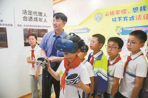 近日,江西省吉安市青原区检察院在法治教育基地开展未成年人法治教育,孩子们通过VR体验沉浸式学习法律知识。