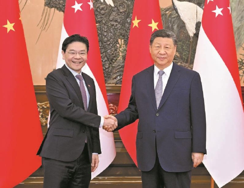 习近平强调,中新要牢牢把握两国友好大方向,始终从战略高度和长远角度看待和发展中新关系,确保航向不偏、动力不减。要筑牢中新友好政治基础,支持彼此核心利益和重大关切,以更高水平政治互信服务两国关系发展。中方欢迎新方继续深度融入中国发展,双方要深入推进共建“一带一路”合作,打造数字经济、绿色发展、人工智能等领域标志性成果,推动重大项目提质升级,续写高质量合作新篇章。要鼓励两国人民常来常往,深化人文交流合作,让中新友好更加深入人心。中方始终认为,和平、发展、合作、共赢的时代潮流不可阻挡,世界不能重拾霸权主义,不能被拖回丛林法则。中方愿同新方一道,站在历史正确一边、站在公平正义一边,共同倡导平等有序的世界多极化、普惠包容的经济全球化,推动世界走向和平、安全、繁荣、进步的光明前景。