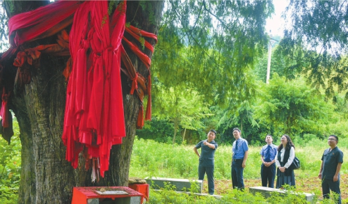 近日,重庆市黔江区检察院应该区法院的邀请,来到水田乡红豆杉生态修复基地,现场查看千年红豆杉的生长养护情况。随后,检察官和法官一起开展法治宣传,宣讲《古树名木保护条例》等相关法律规定,引导群众积极参与到古树名木保护行动中。