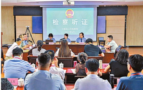代表们在三原县检察院现场观摩一起固体废物污染检察监督案件公开听证会。