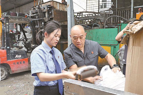 湖北省利川市检察院检察官与法官、办案民警前往某垃圾回收站,就被扣押的涉案假包进行集中销毁过程开展现场监督,防止其再次流入市场。