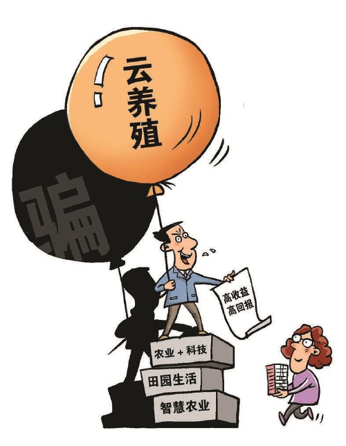 今年4月,农业农村部办公厅、金融监管总局办公厅、公安部办公厅、市场监管总局办公厅联合发布了《关于加强“云养经济”领域欺诈风险防范和处置工作的通知》。该通知显示,近年来,我国“云养经济”领域违法犯罪活动高发,一些不法分子打着发展农业产业的幌子开展欺诈活动,严重侵害公众合法利益,极大地损害了农业产业健康发展。